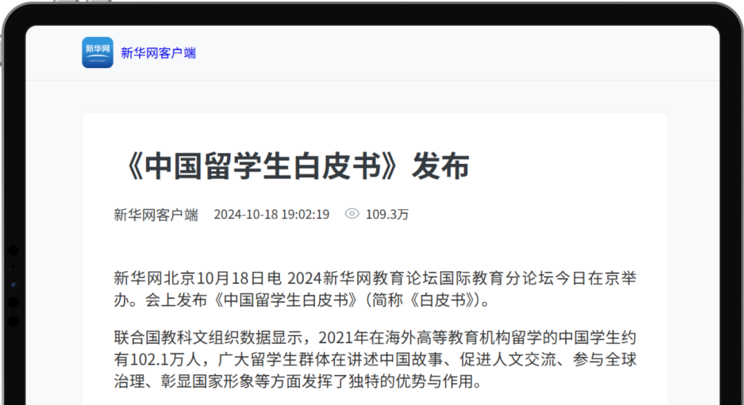 新華網(wǎng)發(fā)布《中國留學生白皮書》,瀏覽量突破百萬,獲各大媒體轉載熱追。