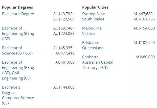 澳洲八大畢業(yè)生年薪排名