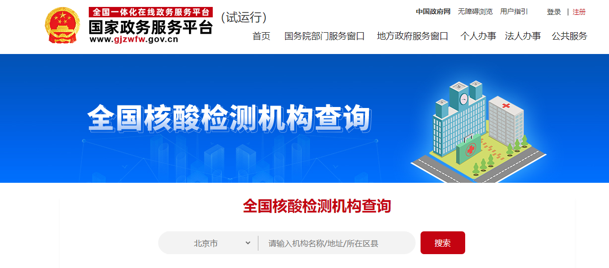 在我國的政務平臺上就能查詢到可以出英文核酸報告的機構了!