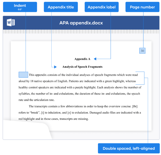 正文采用一般 APA 格式:左對齊,雙倍行距,頁碼位于右上角。每個新的附錄都要另起一頁。