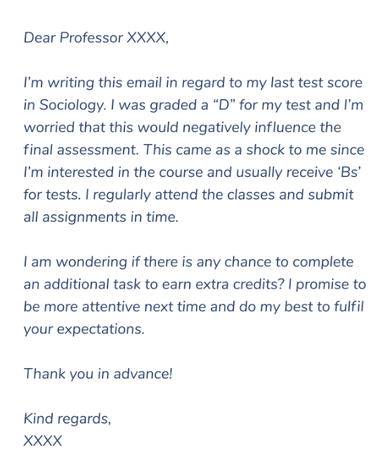 每封郵件的目的略有不同,因此你應該在信的開頭明確說明目標。確保你以禮貌的方式向教授發送請求的電子郵件。證明需要更好的成績,并解釋它如何影響你的GPA。提到你已經意識到自己的錯誤,將會在下次盡力而為。讓教授知道這背后有一些充分的理由。但不要讓它聽起來像借口。要明確表明你是一名認真的學生,給教授發送最終成績的郵件對你來說并不是常事。