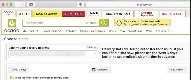 Tesco,Sainsburys'和Ocado已經表示,很多客人已經很難約上三天之內的送貨時段了。