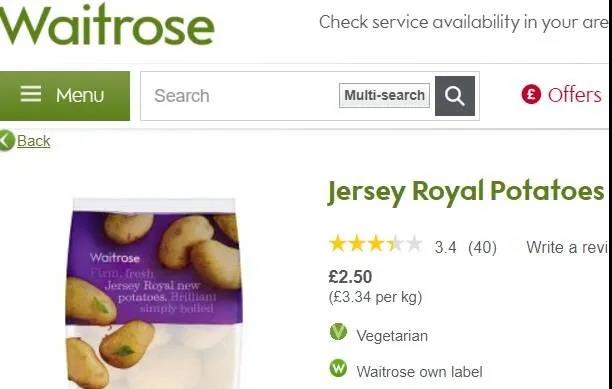 這種英國最高端的土豆有個霸氣的名字:澤西皇家Jersey Royal,因在一場皇家舉辦的土豆品種比賽中拔得頭籌得名。原產來自英國的皇家屬地澤西島,在英國本土也能買到,是米其林餐廳會選擇的土豆品種。