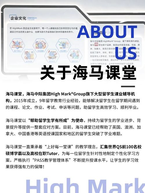 正是憑借著廣泛的業務覆蓋、豐富的服務項目、全面的專業覆蓋以及嚴謹的服務流程,海馬課堂才得以成為留學生們信任的伙伴機構。在未來的日子里,海馬課堂將繼續秉持初心,不斷優化服務,為更多留學生的學業成功保駕護航,陪伴他們在留學之路上越走越遠,收獲更多的知識與成長。