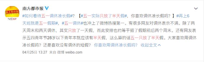 再看看國內的調休的只多出來半天的假期的五一小長假