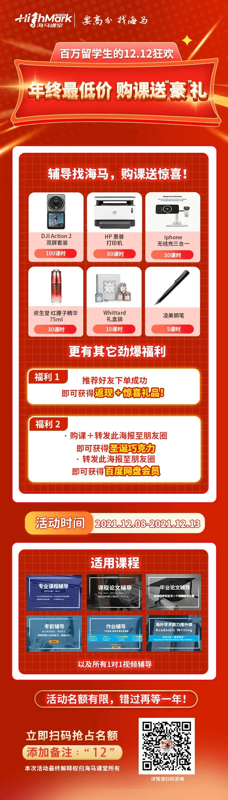 此次活動設置課程完美解決了留學生的各種課業煩惱,從根本上解決你的學業焦慮。涵蓋課程輔導、課程論文輔導、畢業論文輔導、考前輔導、作業輔導、海外學術能力提升輔導。