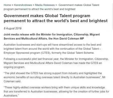 政府官宣這項吸引外國高技術(shù)人才來澳工作的專項簽證GTES在過去一個財年里試行成功,正式進入澳洲的永久移民項目行列。