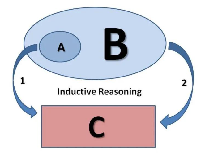 在我們?nèi)粘I钪校蛯W(xué)術(shù)寫(xiě)作中,甚至科研學(xué)習(xí)中,比較容易犯錯(cuò)的是Inductive Reasoning。與Deductive Reasoning相反,它的推導(dǎo)過(guò)程是: