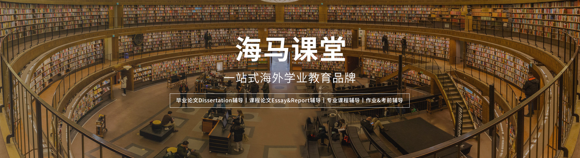 海馬課堂(留學生課業輔導中心) 前身成立于2015年英國曼徹斯特,擁全球前100名校碩博師資、豐富的教學經驗和充足的知識儲備。通過為學生提供1v1的課程輔導、作業講解、考前輔導、論文潤色及背景提升等一系列陪同式教學服務,幫助同學解決學術難題,提高學習效率,最終取得高分,樹立留學生在海外學習中的優勢。
