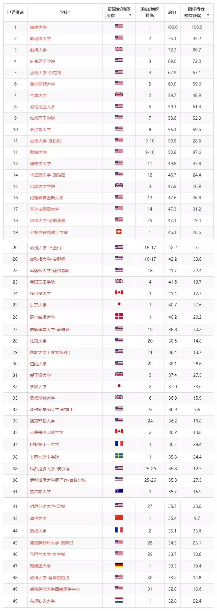 乍眼看過去,都是認(rèn)識的大學(xué)。不過這排名的先后順序,與QS、TIMES等也有差別。