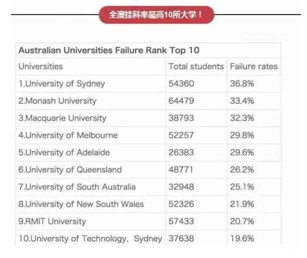 澳洲留學向來以高掛科率聞名世界(bushi,悉尼的平均掛科率已經達到36.8%,意味著什么?十個人就有四個掛科的學生啊!!!以下是澳洲掛科率最高的十所學校,大家可以借此了解一下澳洲嚴苛的學業要求: