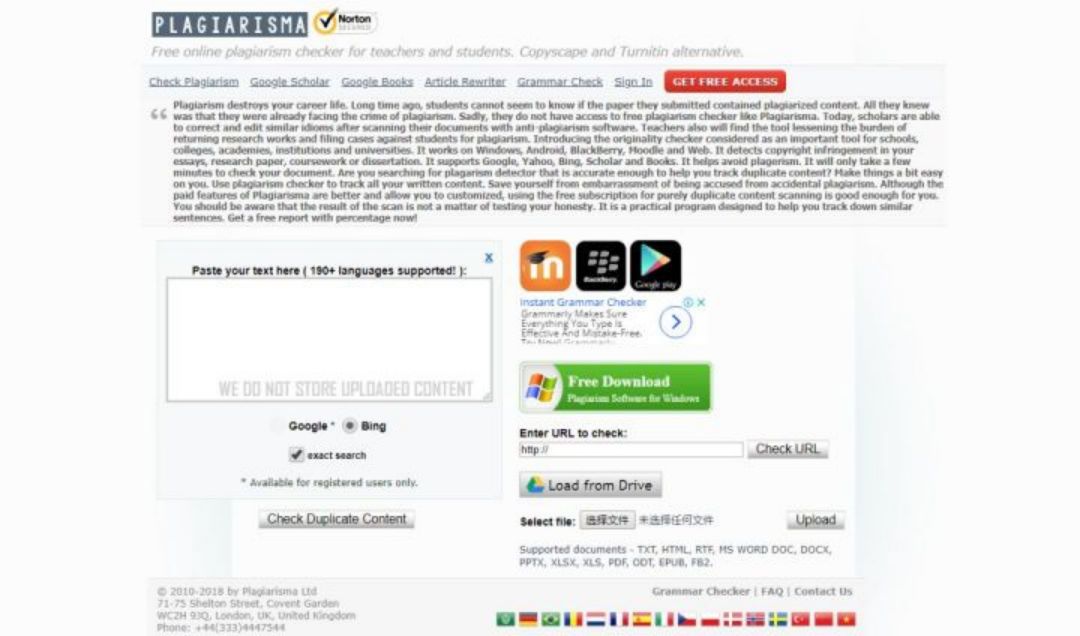 這個網站可以直接將一段文字粘貼進輸入框查詢,不過每次查詢的字數不能超過1000字;它也可以選擇一個文件(word文檔或者記事本文檔)直接上傳查詢,如果出現結果則可以點擊Compare Text查看具體情況。