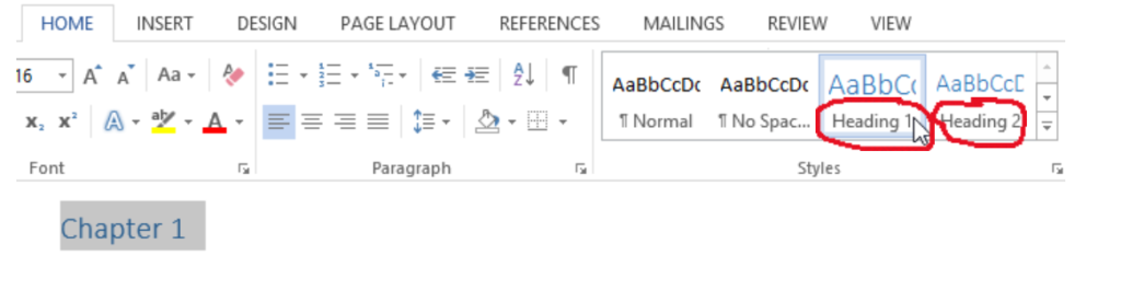 2、頂級標題將是您的章節標題,因此在選項卡的右側,應用標題 1樣式。