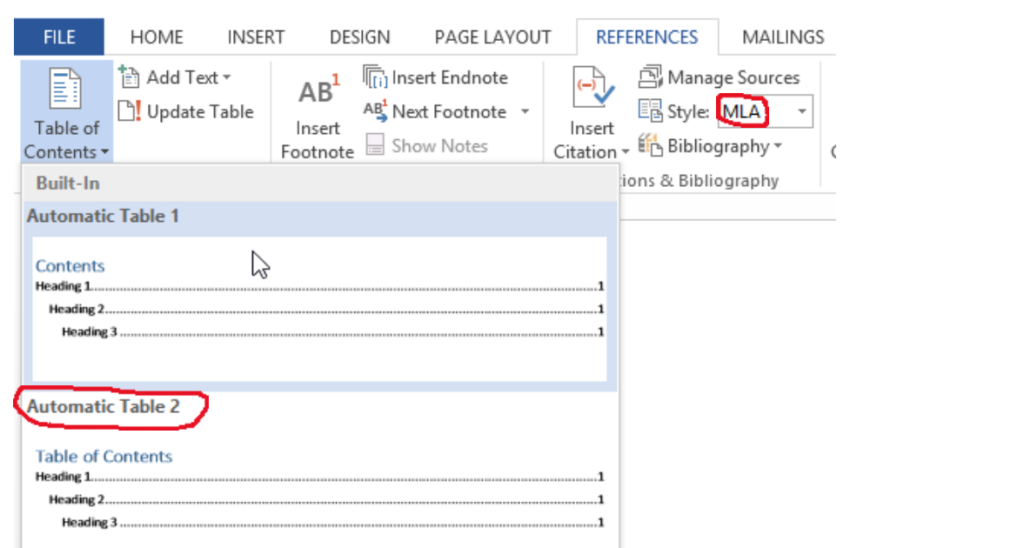 6、接下來,選擇您想要的級別數。在這種情況下,您希望最多可以有三個級別,因此選擇Automatic Table 2,它具有適合論文的標題。