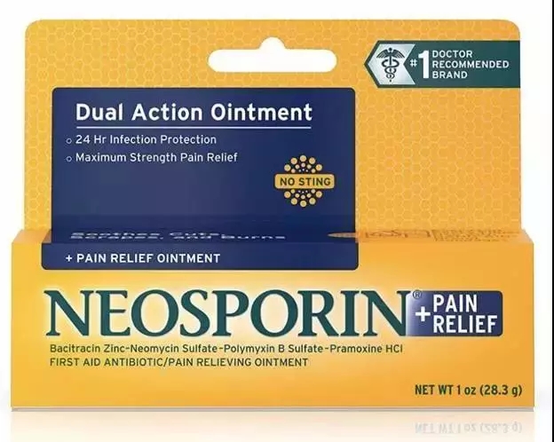類似于中國京萬紅軟膏的燙傷產品,在美國的超市中有Nepsporin抗菌軟膏,它可以殺死皮膚上的細菌防止感染。