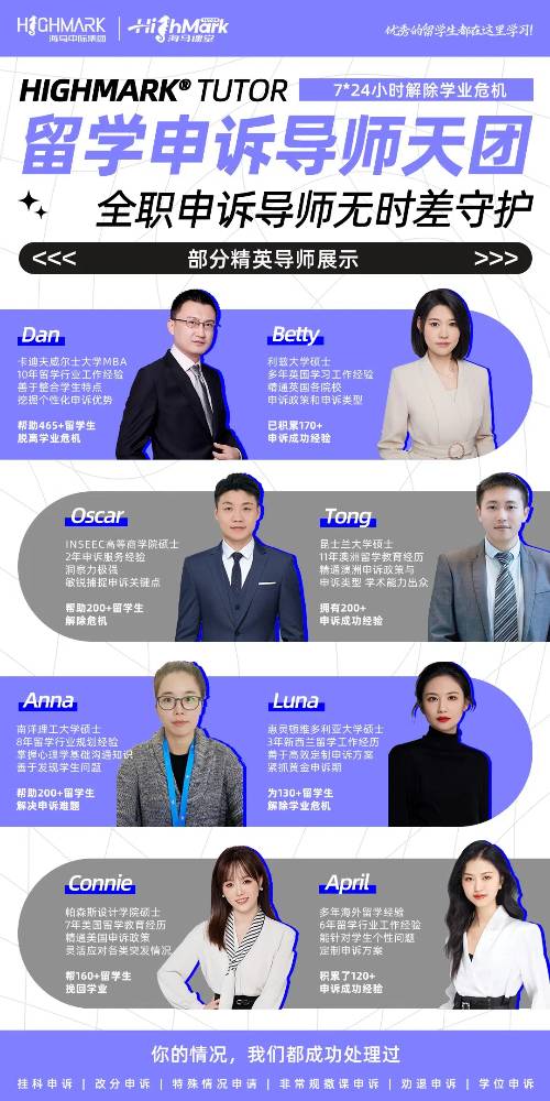 1.強大的 6v1 服務團隊:包括申訴顧問、申訴助理、申訴導師、學術導師、外籍審核、法律專家,為申訴成功率提供保障。